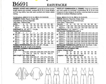 Butterick B6691 Sewing Pattern Misses Easy Jacket And Jumpsuit Etsy